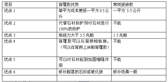 背覆膠是我公司為解決瓷磚、石材和?;u粘結(jié)不牢而研發(fā)的瓷磚粘結(jié)膠。