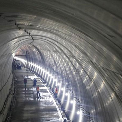 微膨脹注漿料由普通硅酸鹽水泥、超細摻和料、聚羧酸減水劑、微膨脹劑、硅砂等為主要成分,經(jīng)均勻復(fù)合而成的,具有微膨脹性能,良好的流動性和泵送性,與襯砌混凝土具有良好的結(jié)合性能,通過高壓注漿泵注入到隧道襯砌與防水板間的脫空區(qū)的一種注漿材料。