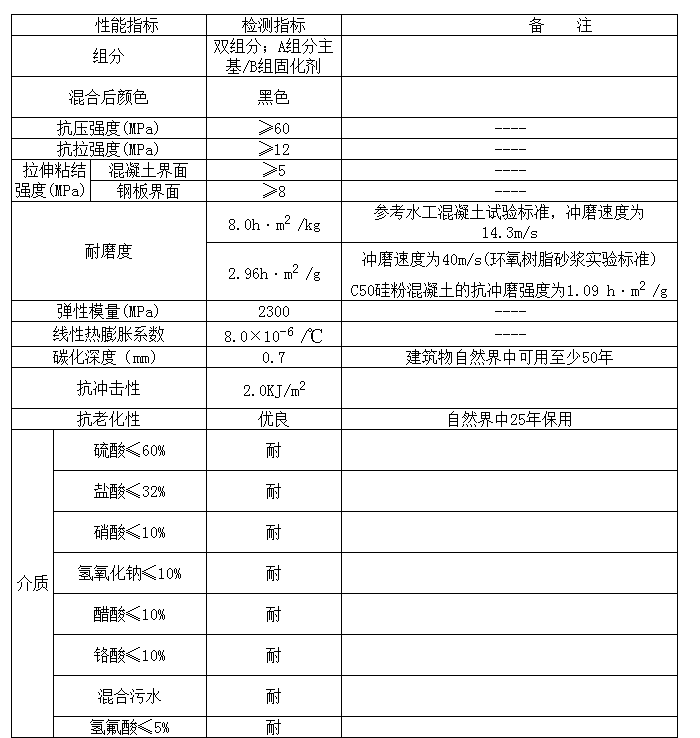良好的抗老化和抗碳化性能,使涂層能與混凝土在不同溫度下同步變形,避免了因材料脹縮差異大造成界面應(yīng)力過(guò)大而出現(xiàn)涂層脫空、開(kāi)裂。